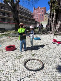 Em conjunto com o Jardim d’Areias e o departamento educativo da Trienal de Arquitetura de Lisboa, a entidade gestora reuniu nos dias 31 de março e 1 de abril um conjunto de crianças para dois dias de brincadeiras com pneus.